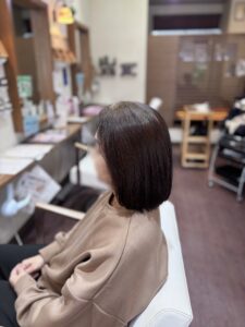 ショートヘボブでカットをして、髪色も整えて、シャンプーとトリートメン、アウトバスもお悩みに合わせました!