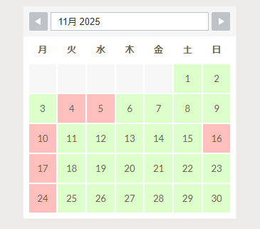 R7 11月の定休日&予約状況案内(^^)